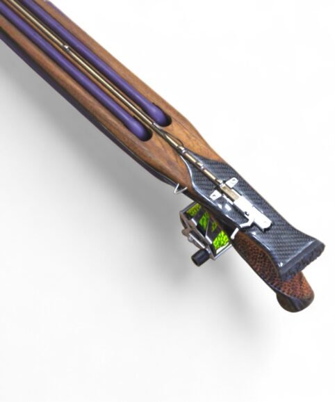 A key factor in achieving this is the exceptionally long effective band stretch, which goes well beyond the typical standards of multi-roller spearguns. The main band (137 cm stretch) along with the auxiliary bands are arranged in a configuration that utilizes nearly the entire available length of the speargun.